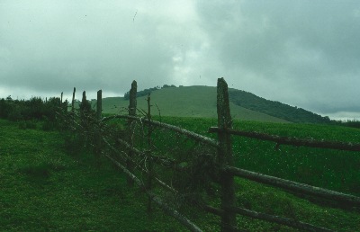 Die Landschaft wird wieder grüner und wir stoßen in die Wolkendecke. Nebel, Nieselregen und Sonne wechseln sich ab.