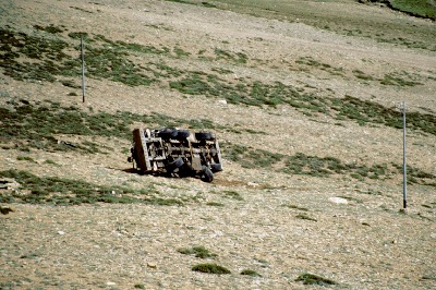 5300 Meter hoch ist der Taglang La, der zweithöchste motorisiert erreichbare Pass der Welt. Viele Serpentinen mit schroffen Steilabhängen und schlechten Asphaltstraßen bilden die Zufahrt. Nicht alle Fahrzeuge kommen heil an.
