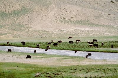 Menschen haben wir in diesem Seitental nur wenige angetroffen – jedoch verlassene Behausungen der Nomaden, die in dieser Jahreszeit ihr Vieh auf üppigere Weidegebiete getrieben haben. Im Frühjahr verlassen sie mit ihren Zelten und den riesigen Yakherden die Täler, um weiter östlich in der Changtangebene zu leben. Sie kehren erst gegen Ende September zurück und verweilen in den milderen windgeschützten Tälern, um den harten Winter mit Temperaturen bis - 40 Grad zu überdauern.