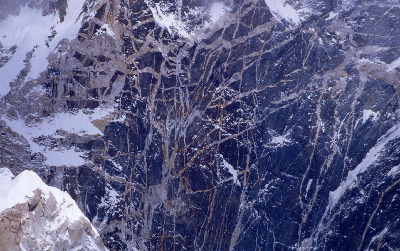 Dieser Abschnitt in der Wand des Nuptse, sicherlich über 1000 Meter hoch, fasziniert mich besonders. Ohne Größenvergleich sind die Ausmaße kaum vorstellbar.