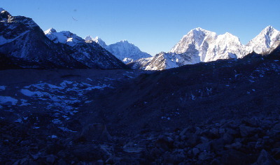 Wir schreiten andächtig links an der Seitenmoräne des Khumbugletschers voran Richtung Lobuche, wo wir in der Nacht aufbrechen wollen nach Gorak Shep und weiter zum Kalar Patar.