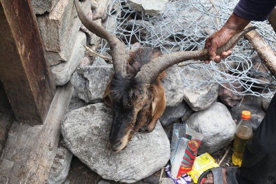 An der Hütte wird gerade eine große Ziege geschlachtet. Ich schaue mal zu und bin fasziniert, mit welchen einfachen Werkzeugen sie das Tier häuten und zerlegen. Natürlich hat unser Koch etwas von der Ziege gekauft für heute Abend.
