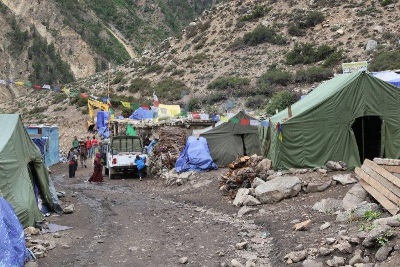 Simone und ich sitzen in unserem Zelt im herrlichen Camp Dzungjen auf ca. 3700 m Höhe. Eine halbe Stunde hinter dem Ort Yari befindet sich der Campplatz auf einer kleinen Wiesenfläche. Simone und mir geht es besser, jedoch sind wir ganz schön fertig und meine beiden Knie sind ganz schön lediert. Morgen erwartet uns der Aufstieg zum Nara La und der 1000 Meterabstieg nach Hilsa. Simone und ich haben deshalb beschlossen, da es mittlerweile eine Strasse gibt, dass wir mit Ashok und der Mannschaft mit einem gemieteten Jeep fahren, um unsere Gelenke zu schonen und diese nicht unnötig noch mehr zu belasten.