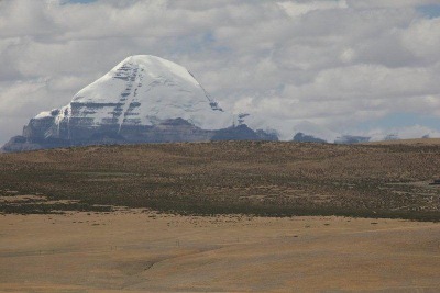 Auf einem Pass sichten wir erstmals den Kailash, der mit gleißenden Gletschern alleinstehend die ganze Umgebung bestimmt. Wir sind wie paralysiert und steigen aus, um Fotos zu machen und erstmals das Ziel unserer Reise zu sehen. An dem Pass sind viele kleine Kailashsteinhäufchen aufgetürmt, Gebetsfahnen flattern im Wind.