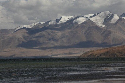 Die Fahrt zum Manasarovasee dauert dank der mittlerweile guten Strassenverhältnisse nur eine gute Stunde. Spektakulär ist die Landschaft mit Ausblicken auf die Ausläufer des Gurla Mandatas, der mit rund 7700m höchste Berg hier in der Gegend.