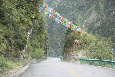 Die Abfahrt auf der anderen Seite des Passes ist spektakulär und bietet uns die ersten Blicke nach Tibet. Wie zu erwarten war, ist das Wetter hier wesentlich besser, da die Monsunwolken zum größten Teil von den Bergkämmen abgehalten werden. Der Weg ist atemberaubend und mir wird ganz schön flau angesichts des rasanten Tempos des Fahrers und der über 1000 Meter abfallenden Berghänge. Ein kleiner Fahrfehler und es wäre aus. Die Witzeleien der Mitfahrer und des Fahrzeugführers gehen mir etwas auf die Nerven. Ich würde ihm gerne sagen: Fahr langsamer und konzentriere dich.