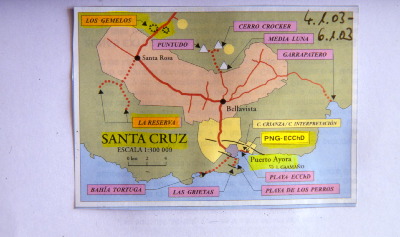 Am letzten Tag unserer Reise besuchen wir die Charles Darwin Forschungsstation auf Santa Cruz. Hier werden viele Forschungsaufträge realisiert, aber auch für die Besucher interessantes dargestellt. In einem Präsentationsbereich (auch hier sollten sich Hamburgs Museumsdirektoren ein paar Stunden Nachhilfe in Sachen kundenorientierter Präsentationstechnik geben lassen) wird die Geschichte der Insel ähnlich plastisch wie auf San Christobal erzählt.