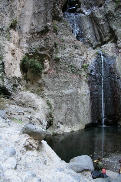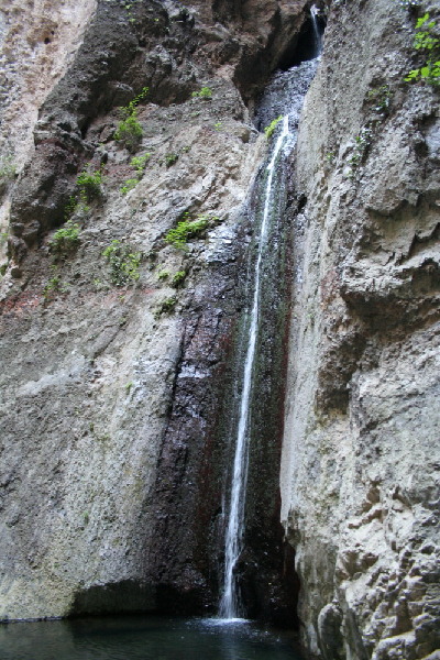 Nach knapp 2 Stunden, der Weg wird zunehmend schmaler und steiniger, ist das Ende der Schlucht erreicht, und man wird mit einem kleinen Wasserfall belohnt.