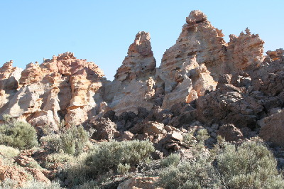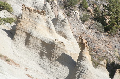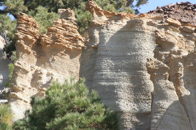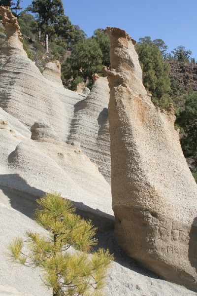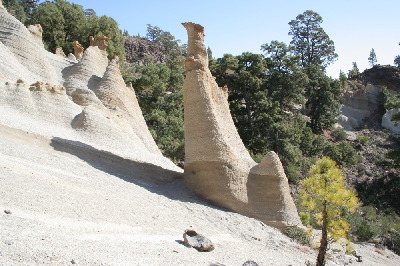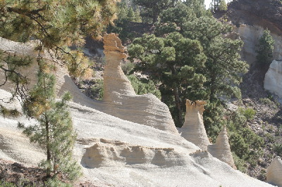 In der Nähe von Vilaflor, am südwestlichen Rand der Caldera liegt die sogenannte Mondlandschaft. Hier hat die Erosion aus den leichten Bimsschichten bizarre Gestalten freigelegt, die der Fantasie freien Lauf lassen.