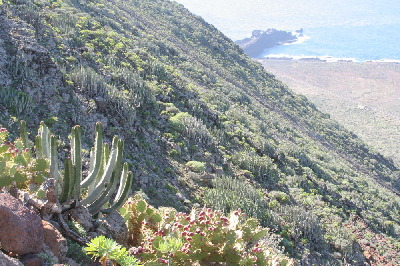 Die Vegetation ist entsprechend üppig. Besonders interessant sind die vielen Kakteenarten und der sogenannte Riesenlöwenzahn, den man gelegentlich am Wegesrand erkennt.