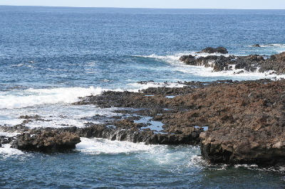 Das Wasser des Atlantik tost mit großer Kraft gegen die steilen Felsküsten. Nur an den wenigsten Stellen, wie hier, kann man in das Wasser hinein. Dennoch ist Vorsicht in Bezug auf die Strömung und die Wucht der Wellen ratsam.