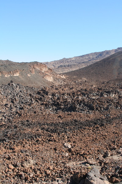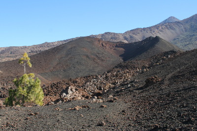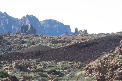 Immer wieder der Blick auf den Teide und seine an seinen Hängen erkalteten Lavaströme.