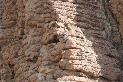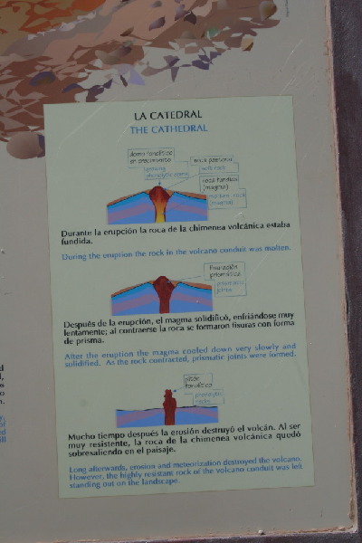 Ungewöhnliche Formen bilden eine eigenartige Szenerie. Dieser Stein ist der stehengebliebene Überrest eines Vulkanpfropfens aus erstarrter Lava. Der ihn umschließende Krater ist vollständig erodiert.
