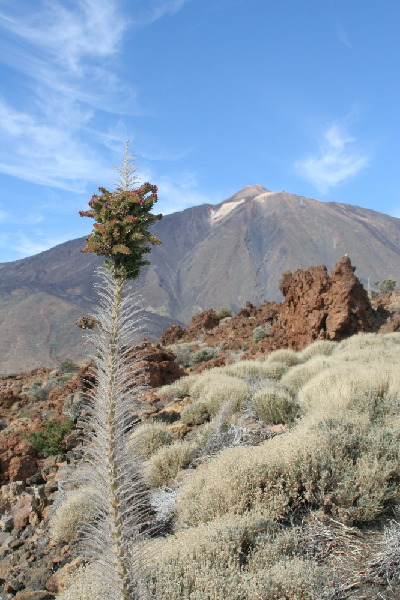 Der Pico de Teide ist mit 3717m der höchste Berg Teneriffas, ja sogar von ganz Spanien. Der fast kegelförmige aktive Vulkan dominiert die Insel mit seiner Präsenz und den noch rauchenden Schwefelfumarolen in seinem Gipfelkrater.