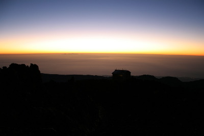 Da die Permitkontrolle erst mit der ersten ankommenden Gondel beginnt und mit der letzten abfahrenden endet, bleibt die Variante des nächtlichen Aufstieges mit der Ankunft zum Sonnenaufgang im Krater und dem anschließenden Abstieg per Gondel.