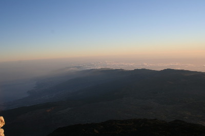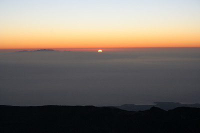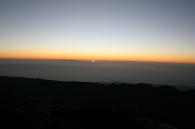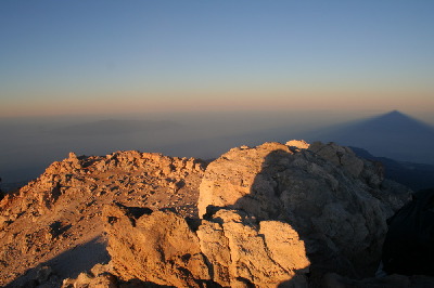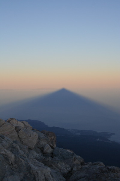 Der Gipfel des Teide wirft einen riesigen Schatten ins Meer, der nur wenige Minuten zu sehen ist. Ein ähnliches Phänomen gibt es auf Sri Lanka am Adams Peak, den wir vor ein paar Jahren bestiegen hatten (siehe Reisebericht Sri Lanka).