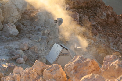 Im Kraterinneren sind eine Reihe von Messgeräten aufgebaut, die den aktiven, aber schlummernden Vulkan jederzeit überwachen. Erst vor 30 Jahren gab es einen großen Ausbruch eines Parasitärkraters, der sogar Schäden angerichtet hat.