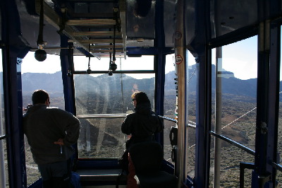 Um 9.00 Uhr kommt die erste Bahn von unten herauf. Diese Gondel bringt die ersten Touristen und die Nationalparkwächter zur Permitkontrolle hinauf. Man schaut uns mit großen Augen an, da man zu dieser Jahreszeit solche Taktiken wohl nicht kennt.